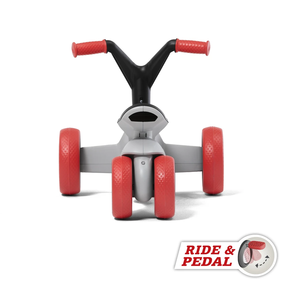 Eerst in gebruik als loopauto, maar is je kindje eenmaal toe aan de volgende stap klapt u eenvoudig de pedalen uit en uw dreumes rijdt zo weg.