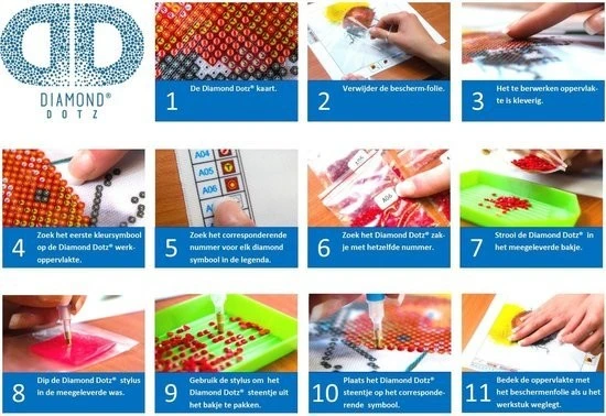 Onze Diamond Dotz Facet Art Kit wordt geleverd met alles wat je nodig hebt om dit unieke kunstwerk te voltooien. Diamond Dotz is een geweldig nieuw ambacht waar verbluffende ontwerpen worden gemaakt met โdiamantโ-achtige facetten. Van een breed scala aan ontwerpen die aan alle smaken voldoen, zal de Diamond Dotz schilderijset een verbluffend glinsterend effect produceren. Snel en gemakkelijk te doen, het eindresultaat is een prachtig diamantschilderijontwerp dat zo spectaculair is dat je ernaar verlangt om meer te doen!