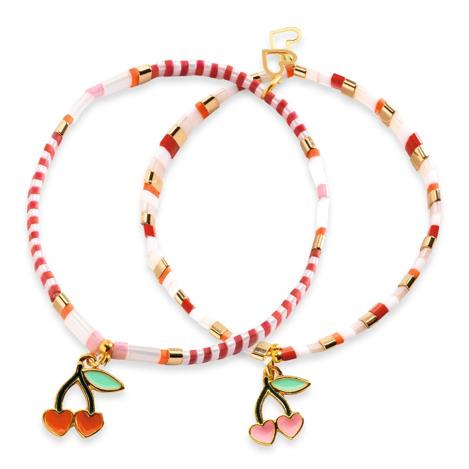 In een mooie glanzende doos, een assortiment gekleurde kralen en bedels om 2 armbandjes te maken. Leuk voor jezelf of om cadeau te geven. Er zijn 2 organza zakjes bijgesloten waarin je de armbandjes kunt bewaren of daarin verpakt cadeau kunt geven. Daarbij zijn er 2 lieflijk geïllustreerde kaarten waarop je persoonlijke berichtjes voor de ontvangers kunt schrijven.