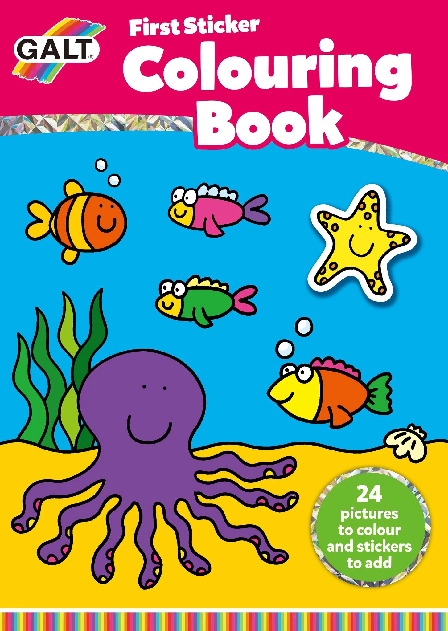 Kleurboek voor kinderen vanaf 2 jaar met 24 kleurplaten en als extra een sticker voor elke bladzijde.