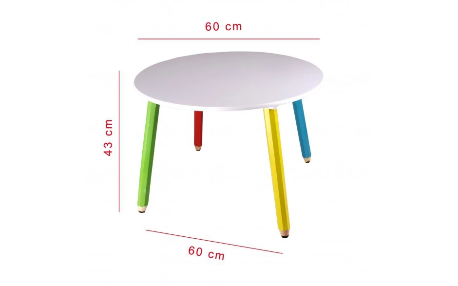 Kindermeubelset bestaande uit een ronde tafel met 2 stoeltjes in een gezellig potlooddesign.