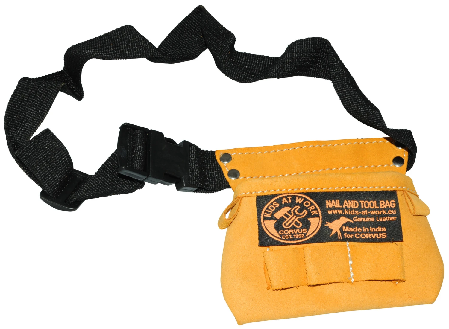 De kindergereedschapsgordel heeft verschillende formaat vakken, passend voor een nijptang, baco of timmermanspotlood en aan de zijkant een lus voor de hamer. De vakkentas is bevestigd aan een riem met gesp.Het duitse merk Corvus produceert onder de serie Kids at Work echt professioneel gereedschap speciaal voor kinderen.