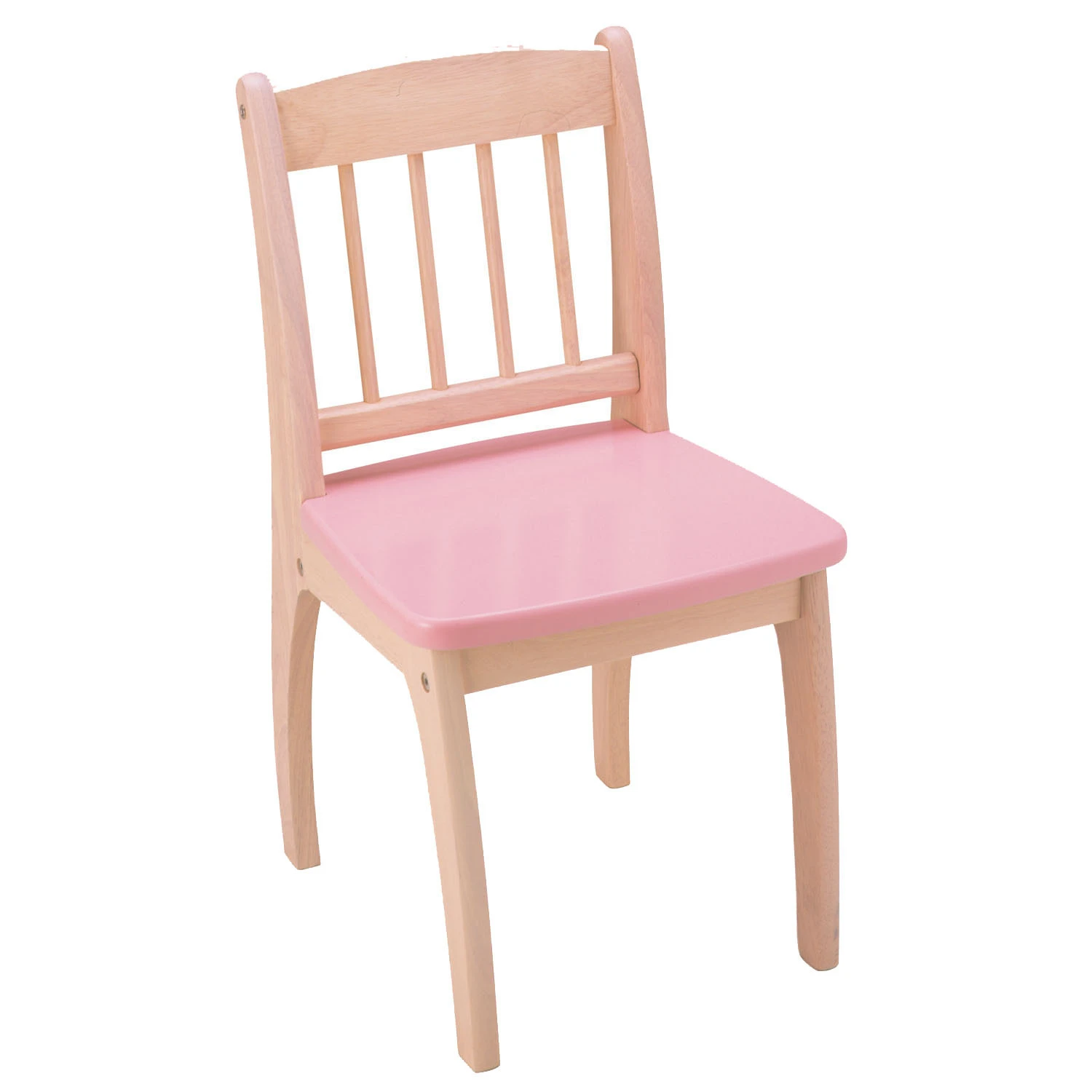 Prachtige stoel van rubberwood. Leverbaar in blauw en rose. Afmeting stoel 32 x 35,5 x 60 cm. Zithoogte 32 cm.