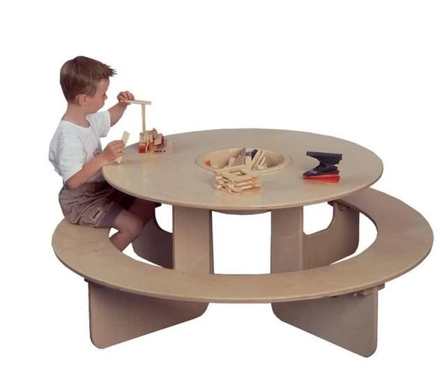 Grote speeltafel me vaste bank rondom, geschikt voor 6 – 8 kinderen tot een leeftijd van 6 jaar.