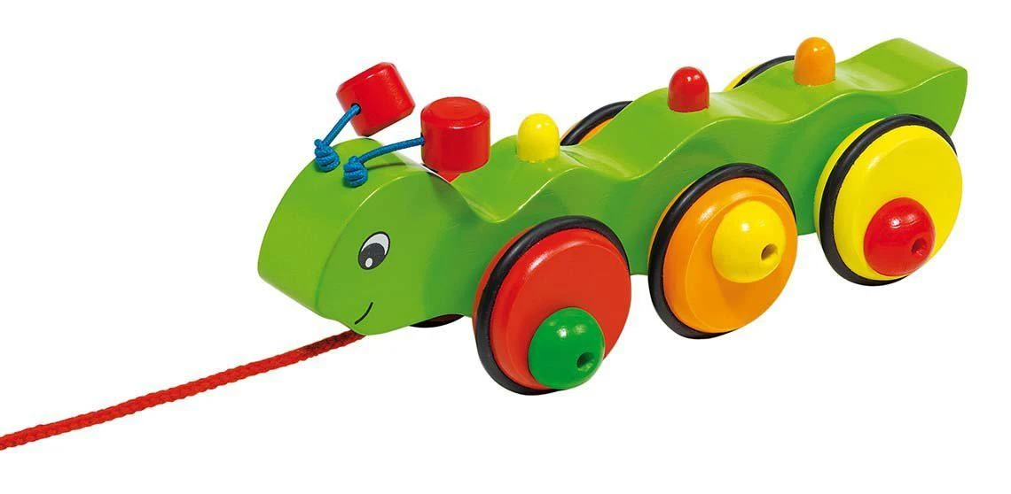 Houten trekfiguur in de vorm van een rups.